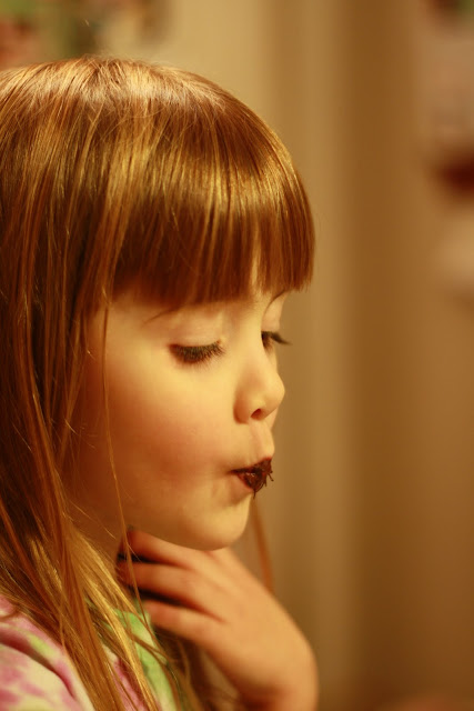 Tonight, Greg and I made buckeye balls. Elizabeth wasn't interested, since she doesn't like chocolate or peanut butter, but Alexandra was all about them. Plus, instead of calling them "buckeye balls", she calls them "buck eyeballs", which I find completely hilarious. Like, they're the eyeballs of someone named Buck. Ha!